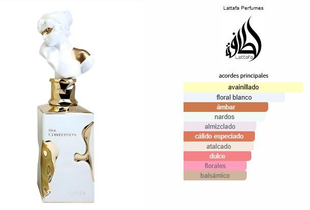 | Content | Sumérgete en el misterio y la sofisticación con Her Confession Eau de Parfum, una fragancia creada para la mujer segura y seductora que sabe cómo dejar huella. Este perfume cautivador combina notas cálidas, florales y sensuales en una armonía perfecta, revelando capas intrigantes que se despliegan con el tiempo. ![]() La apertura intrigante comienza con un acorde especiado de canela y toques místicos, que envuelven el ambiente en un halo de calidez y magnetismo. En el corazón de la fragancia, las notas florales de jazmín, nardo e incienso aportan una riqueza profunda y elegante, mientras que el toque de mahonial añade una sutil sofisticación. Para completar esta obra maestra, la base se asienta en la suavidad envolvente de habas tonka, almizcle y vainilla, dejando un rastro duradero y lleno de personalidad. Pirámide Olfativa:
