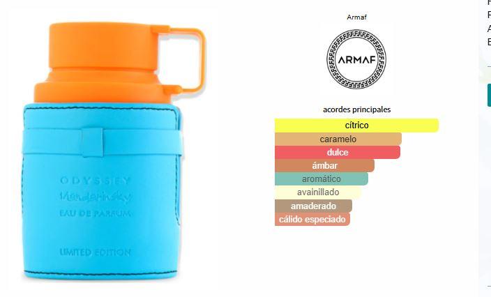 | Content | ODYSSEY MANDARIN SKY – Eau de Parfum 100ml para HombreFrescura vibrante con alma ambarada Descripción: Su apertura brillante mezcla la mandarina, el azafrán y el naranja con la sutileza herbal de la salvia, dando paso a un corazón cremoso y adictivo con caramelo, haba tonka y un toque floral de tagetes. El fondo se asienta con elegancia gracias al vetiver, la madera de cedro y el poderoso toque ambarado del ambroxan, dejando una estela refinada y masculina. ![]() Formato disponible: